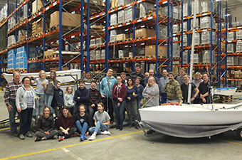 Am Freitag trafen sich die jungen Segler und Seglerinnen aus der Kinder- und Jugendabteilung, um zusammen mit ihren Eltern die Boote auf Trailer zu verladen, fest zu zurren und das notwendige Handwerkszeug zu packen. Ziel des Ausflugs war im achten Jahr in Folge die (glücklicherweise!) beheizte Halle des Unternehmen Doyma in Oyten, Marktführer im Bereich der Rohr- und Kabeldurchführung, wo mit tatkräftiger Unterstützung der Eltern an den Jollen gearbeitet wurde.Jetzt glänzen sie wieder, die Jollen