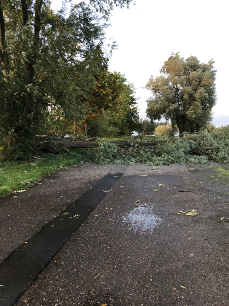 Die gute Gemeinschaft der Hasenbürenlieger sorgte für einen ruhigen Schlaf für die Bootseigner. Mathias Winter war am Vormittag als erster im Hafen und konnte nach seinem Kontrollgang günes Licht über Frank an die übrigen Bootseigner melden. Am Abend, nachdem die Front durch war, kamen dann noch Meldungen von Thomas und Rolf. Alle Schiffe hatten den Starkwind gut überstanden. Nur ein Baum vor dem Niedergang musste sich leider dem Sturm “beugen” -